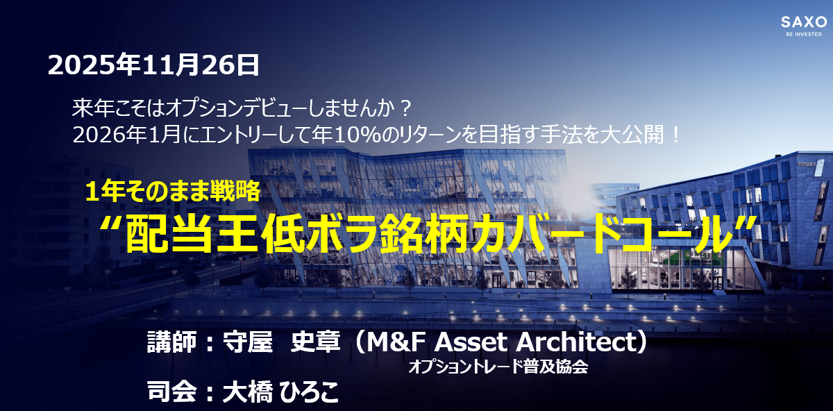 サクソバンク証券のオンラインセミナー『来年こそはオプションデビューしませんか?2026年1月にエントリーして年10%のリターンを目指す手法を大公開!』