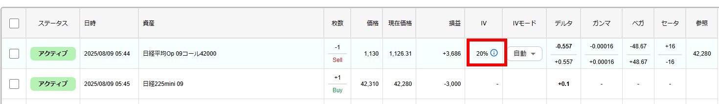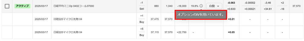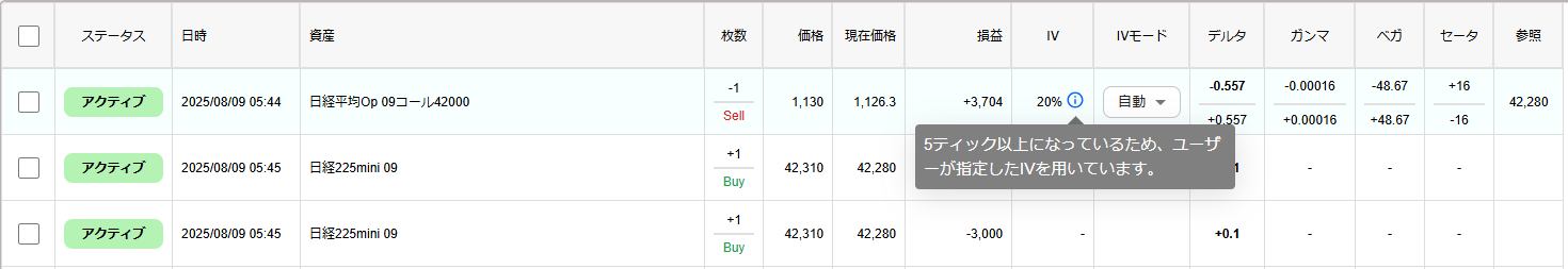オプションが1枚でもアクティブ化されていると自動デルタヘッジが稼働する。