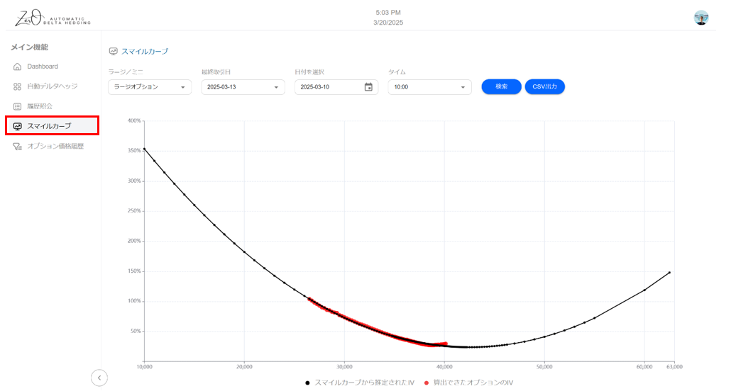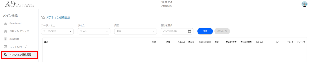 ・指定した時間帯のオプション価格、IV、デルタなどを確認する。データをCSVに出力できる。